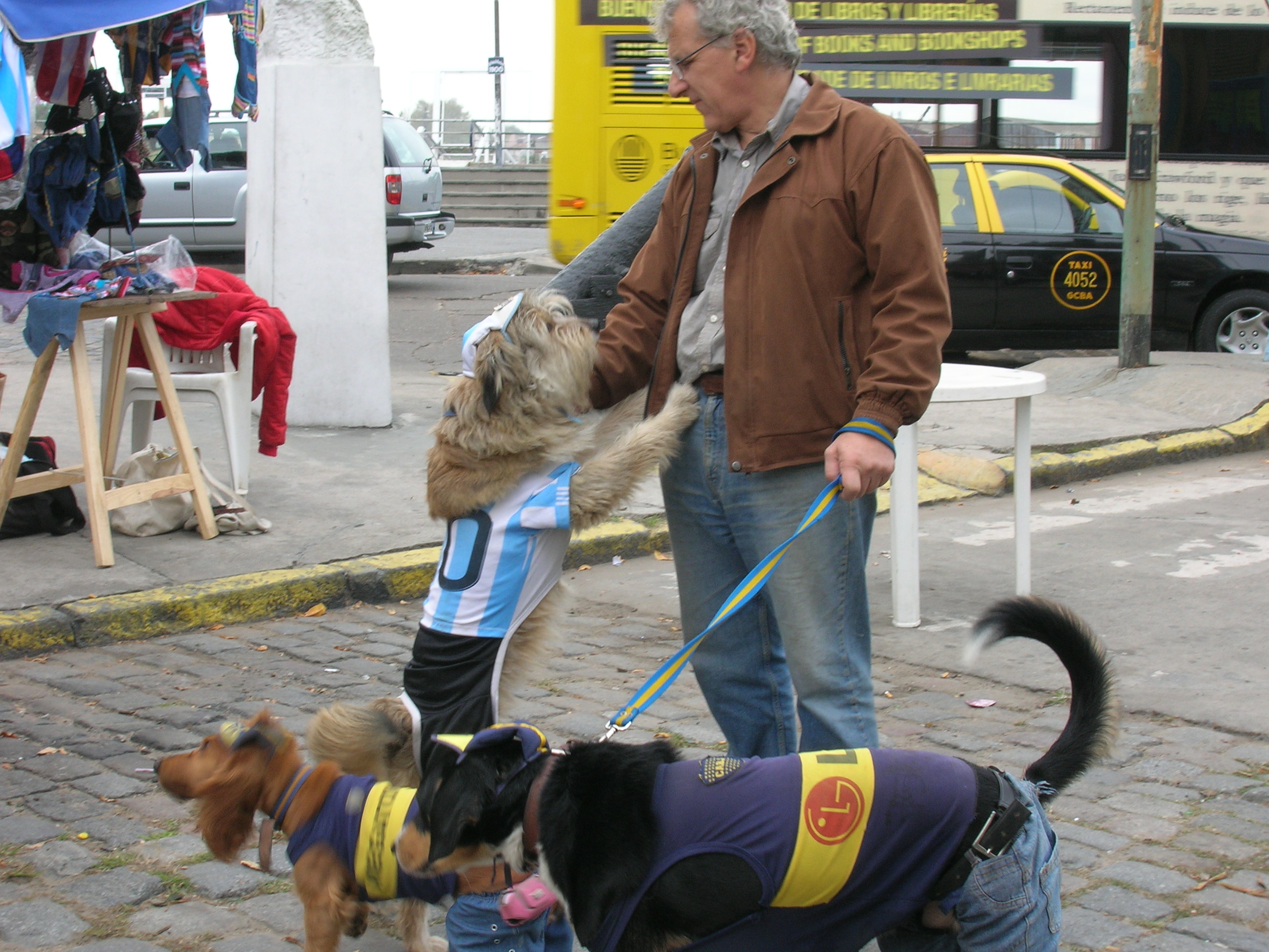 Before we left the area we were entertained by both the dog outfits and one more of the many figurines, this one ready for the upcoming match. Oh and we also found the guys again.